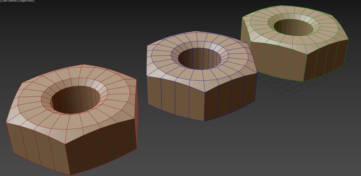 Итак что мы имеем: 2 вида гаек, один высокополигональный переименуем его в Hi:
