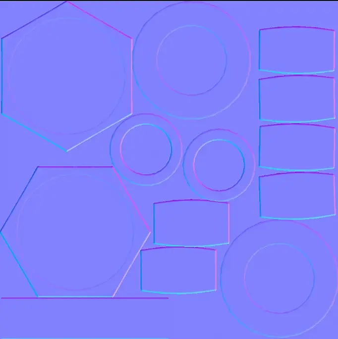 Нажав рендер получаем вот такую карту нормалей: