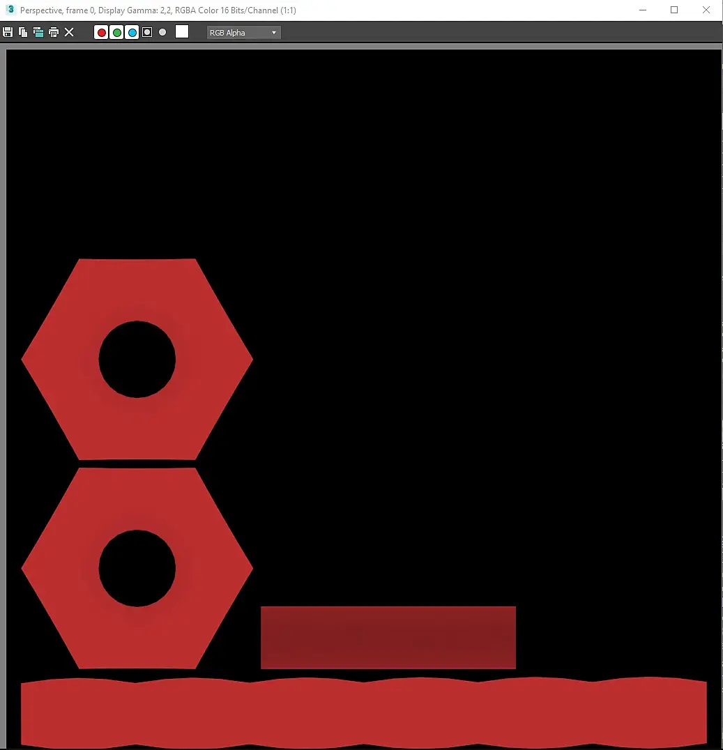 Далее возвращаемся в окно Render to Texture и нажимаем окно Render в самом низу. Сразу замечу что 3DS max не отображает карту которую рендерит, а отображает карту Diffuse слота даже если она не установлена на рендер, то есть если ваша высокополигональная гайка была красного цвета, то в окне вы увидите развёртку залитую красным цветом.