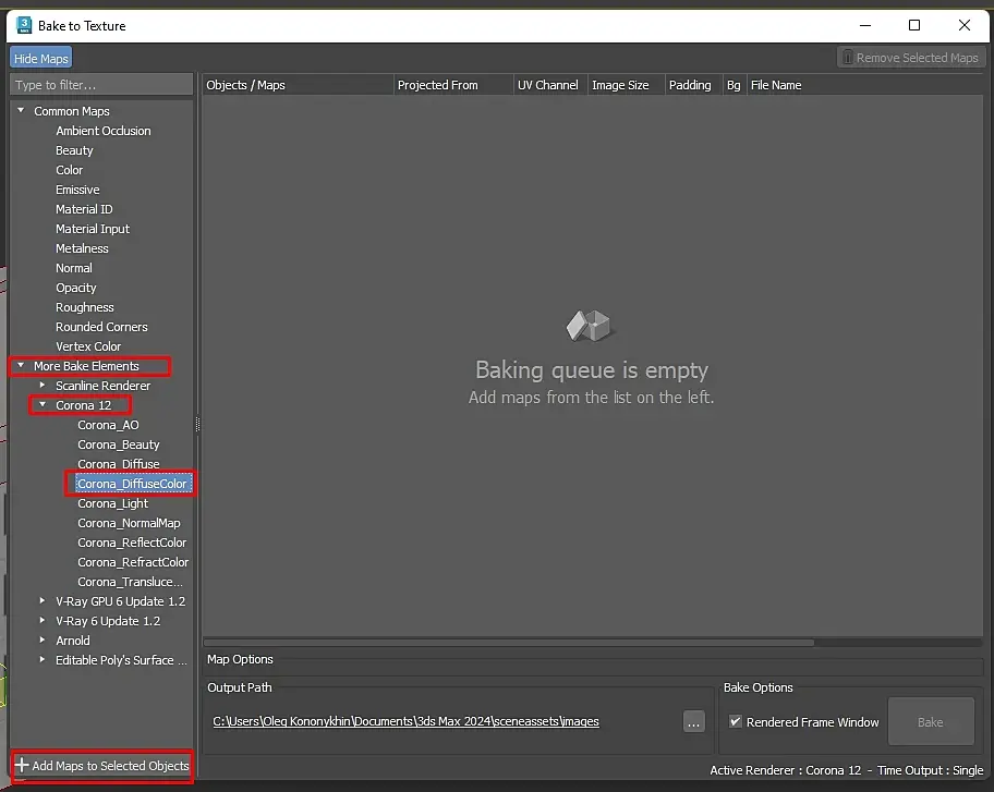 Запекание текстур в 3Ds max + Corona renderer