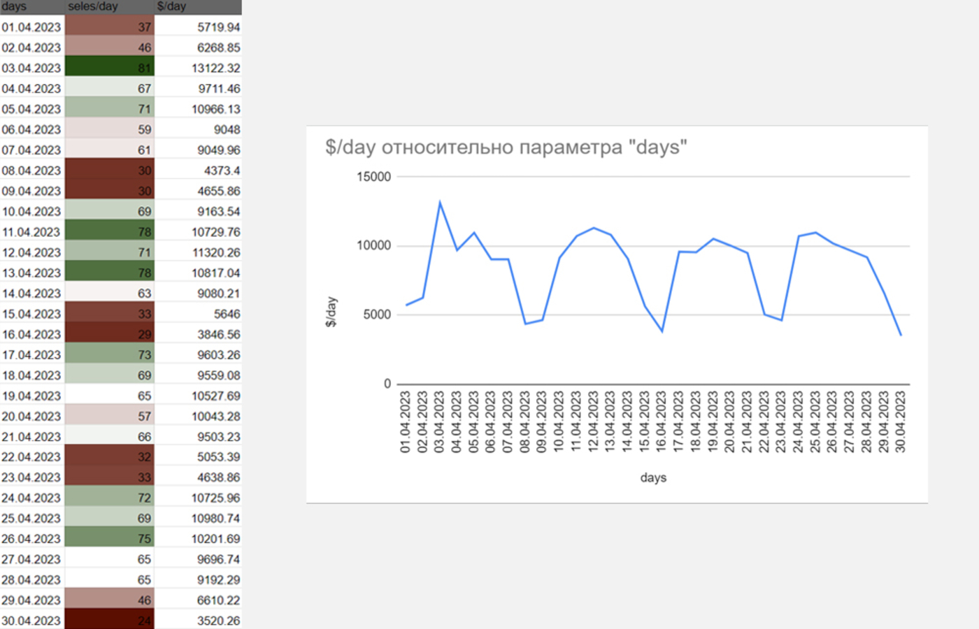 Но конкретно по доходам просадки нет: новые модели нивелировали спад, а недавно полученное золото тоже помогает немного скомпенсировать небольшие потери. Итого: доход в сутки вырос на 300 руб относительно марта - 8446 руб/день, кол-во продаж в день чуть просело - 57 продаж/день. Установлен новый рекорд: 13100 руб/день (81 продажа)