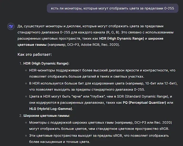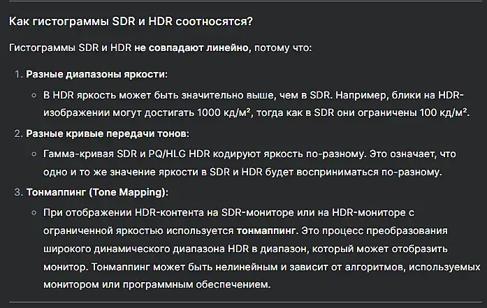 Я уже даже не знаю, вроде всё расписал тоже, а люди как буд-то тупо не читают сообщения на страницу назад, врываются типо "я ничего не понимаю". Закреп что-ли как то сделать. Всё уже было разжёвано и в рот положено. Кстати, интересный вопрос возник по-ходу, а знаешь есть моники с режимом HDR400/600/1000. Может это связано с тем как раз, что они могут отображать в диапазоне от 0 до 400/600/1000?) Интересно...