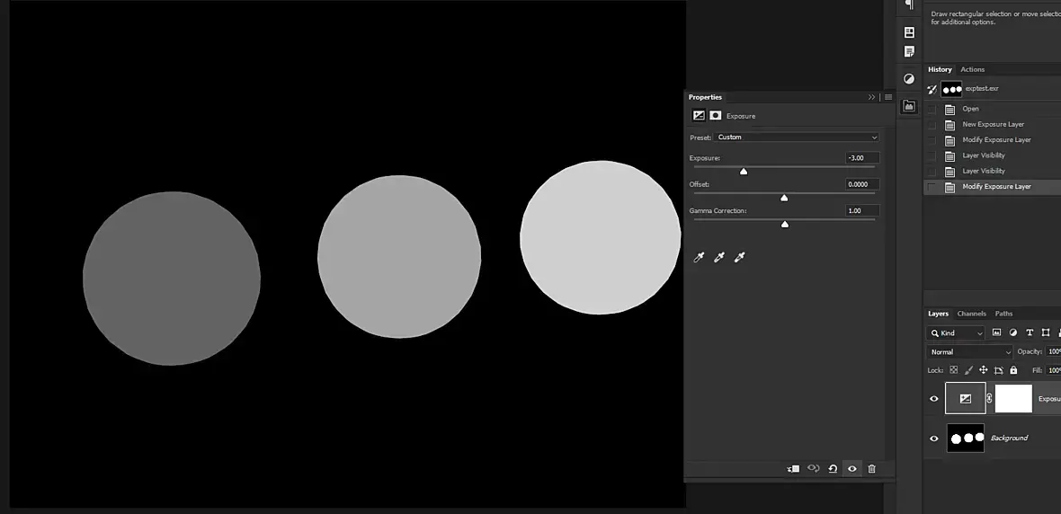 Все верно. Скручивая экспозицию в минус, мы сжимаем гистограмму таким образом, чтобы вся она убралась в диапазон 255, поэтому разница между яркостями шариков становится видна