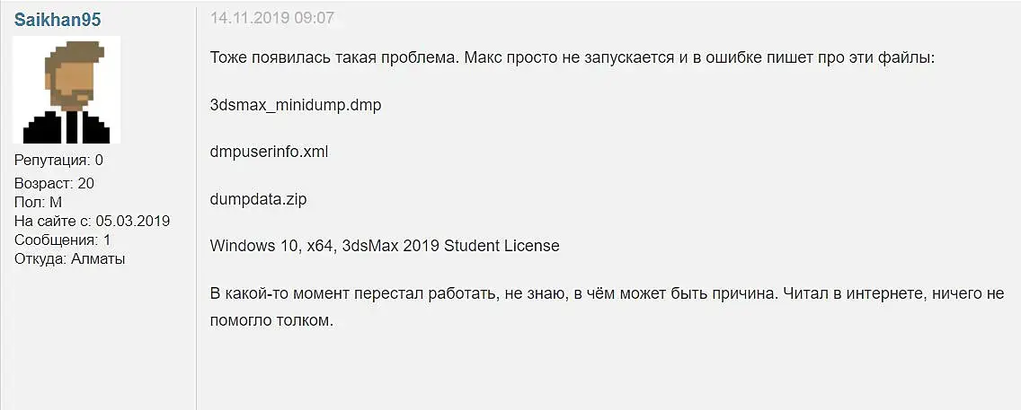 Когда макс вылетает, нажимаю на кнопку "View report details" - "The error report contains the following files" - там это - 3dsmax_minidump.dmb, dmpuserinfo.xml, dumpdata.zip