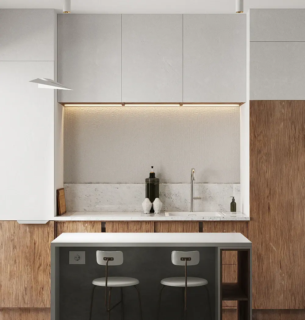 геометрия,текстурирование,освещение,маты местами и целостность кадра. В первом кадре даже не понятно куда смотреть. а на втором кадре только на косяки текстур и геометрии,третий просто каша.. В целом работа не для галереи , даже если смотреть на технику исполнения. Сам дизайн вроде минималистичный, но в целом не собран в композицию. Рекомендую погуглить такие интерьеры белые в стиле минимал. И при должном исполнении геометрии,света и матов, у вас выйдет крутой вариант для галереи . Удачи