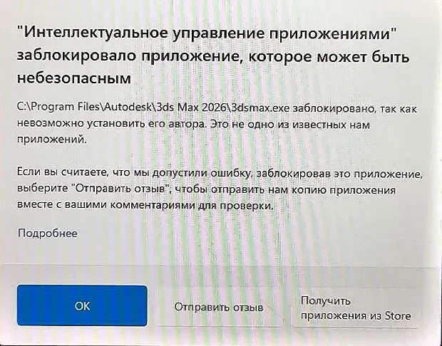 В последнее время, из за встроенных в систему Windows интеллектуальных функций (ИИ), стала наблюдаться блокировка запуска 3Ds MAX.