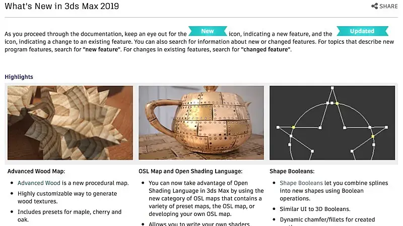 Autodesk has made the documentation for its upcoming release available online. The “What’s New?” section for 3DS Max 2019 points towards several new features, including: