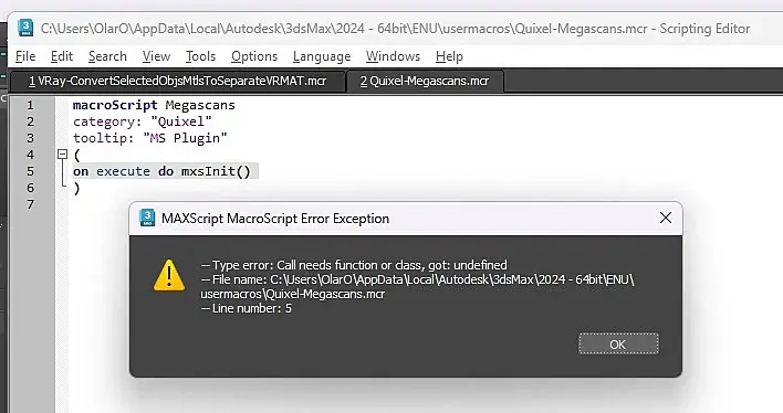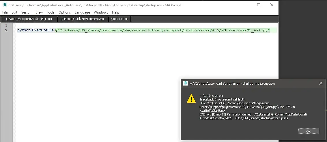 Большое спасибо - isnogud (Владимир Болоткин) и nailgun (Наиль Хуснутдинов) за помощь в решении проблемы. Необходимо было удалить файл startup.ms и после заново восстановить путь к библиотеке.