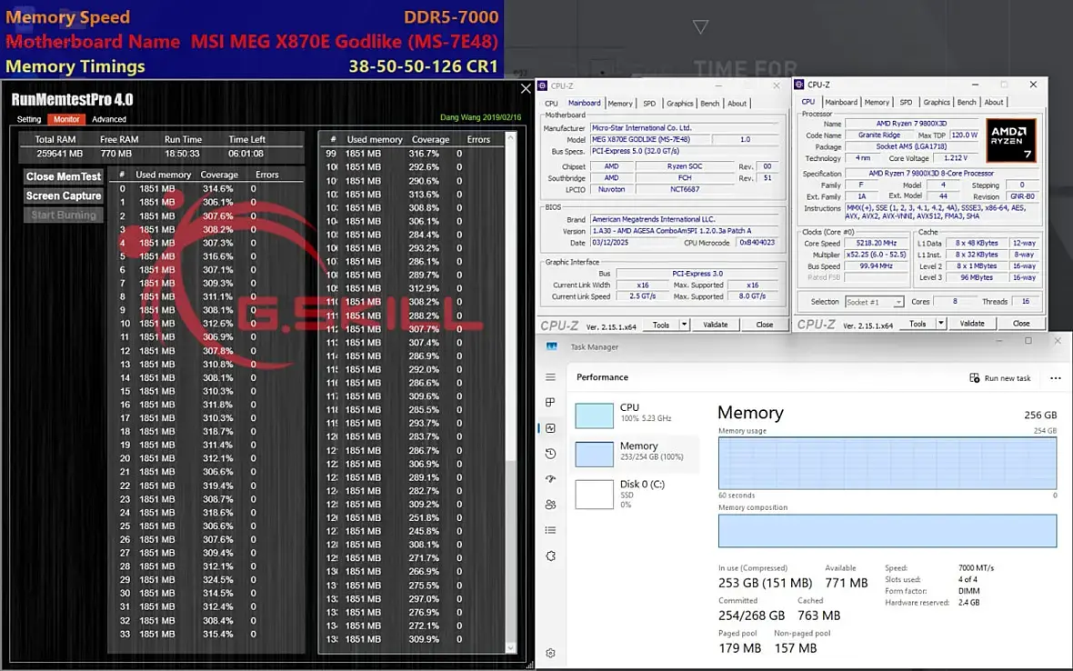 256GB UDIMM на 7000Mhz/CL38 (9800X3D / X870E Godlike) :