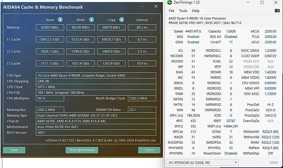256GB UDIMM на 6400Mhz/CL32 (9900X / Crosshair X870E Hero) :