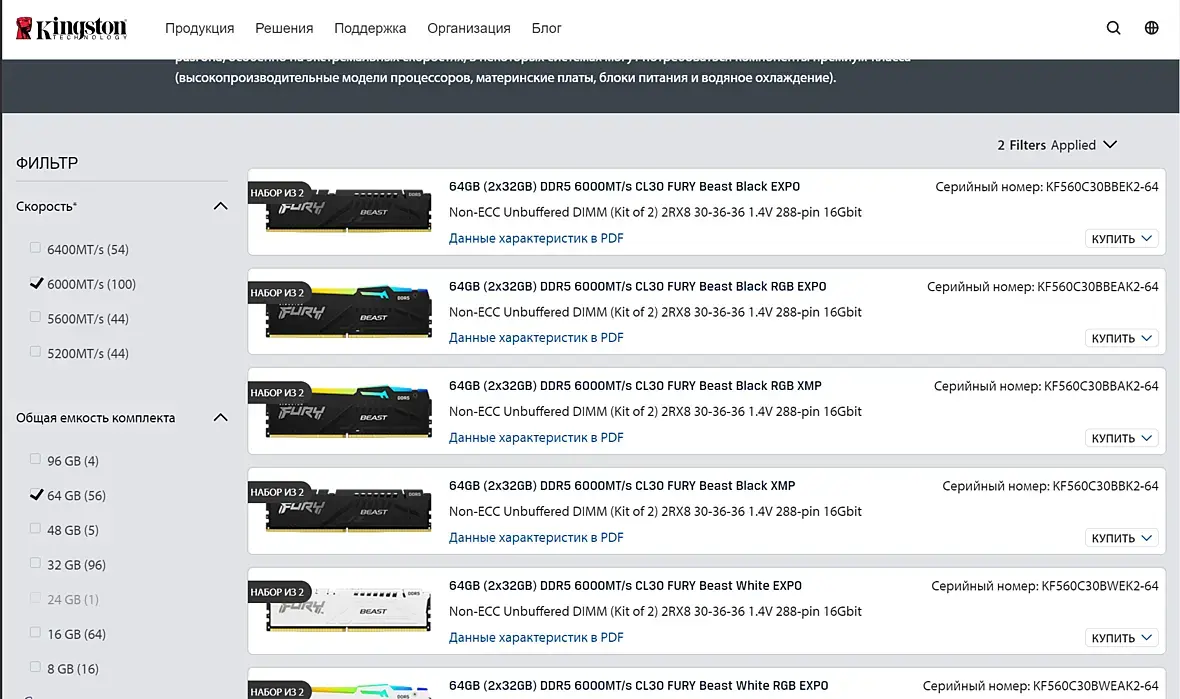 1. https://www.kingston.com/ru/configurator "Поиск по системе/устройству" тут вбиваем Вашу мать ProArt X670E, по идее в базе сразу пробивается нужная и в выпадающем списке увидите полное ее название. Кликакете.