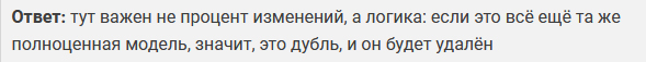 Ответ: тут важен не процент изменений, а логика: если это всё ещё та же полноценная модель, значит, это дубль, и он будет удалён