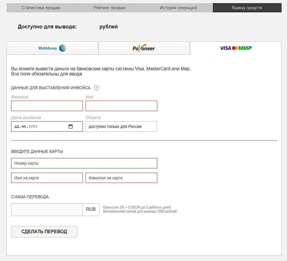 Подключили выплаты на карты РФ (Visa, Mastercard и Мир). Не обращайте внимание на иконку вкладки, ее заменим.