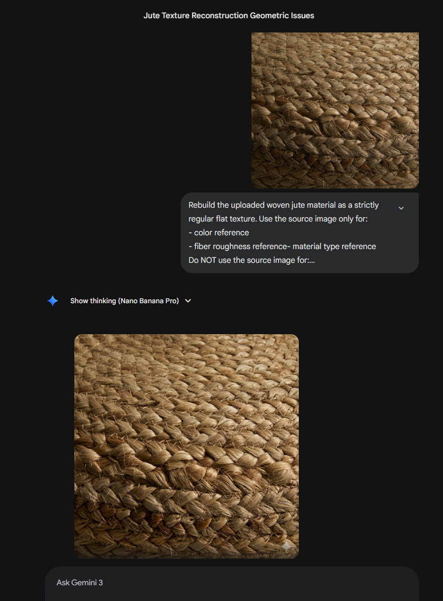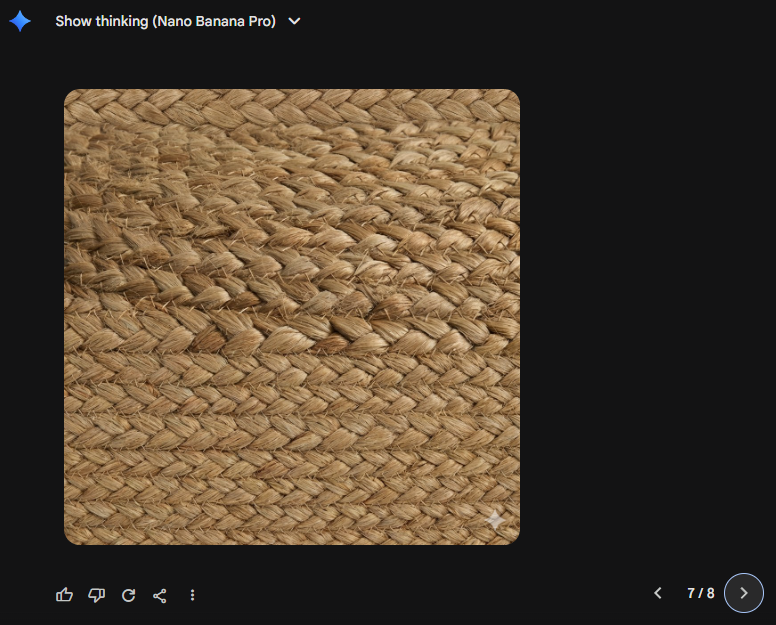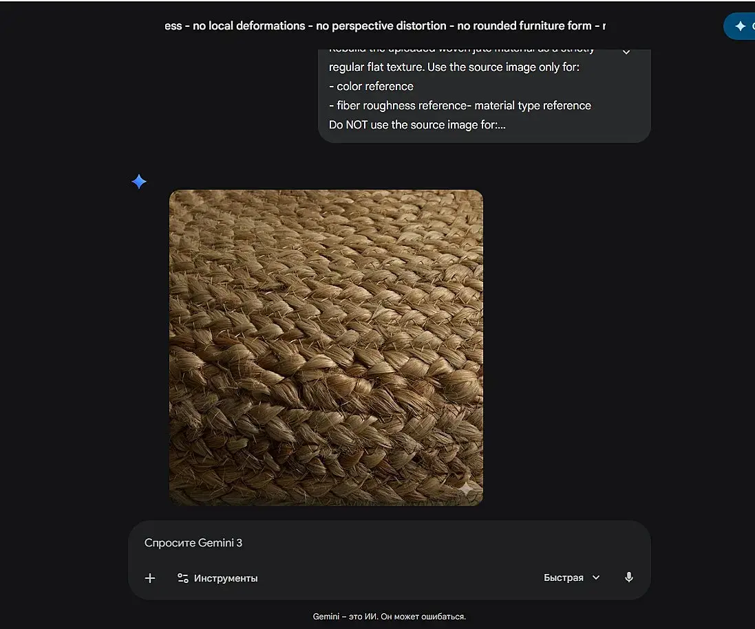 короче, мы нашли того, у кого "банана" длиннее. у меня нифига не выходит... у меня есть 3 режима генерации "fast" "thinking" "pro" ни один не выдает такй результат. похожий - да. пытается выровнять текстуру по свету, ровняет пару рядов сверху и снизу, но такого результата не дает пока