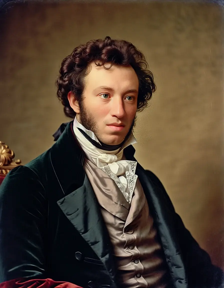 Оказывается очень мало картин Пушкина. Взять изображение почти неоткуда и он на всех картинах немного разный. Добиться похожести достаточно сложно. Я ориентировался на эту картину.