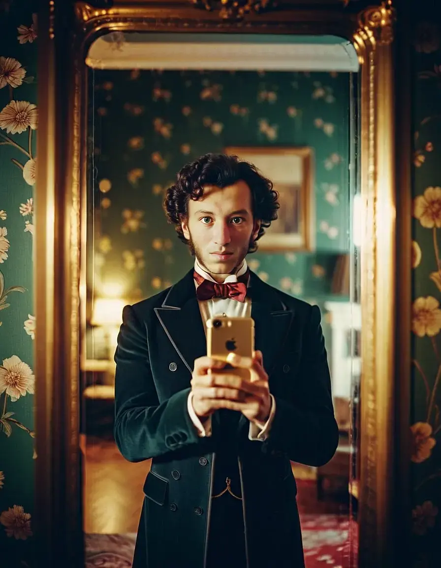Я в Инстаграме завел ему страничку и он там фотки постит и подписывает в стихотворной форме ))))) Если интересно, подписывайтесь alexander_pushkin_spb Сегодня он с друзьями в прорубь нырял. Крещение же.