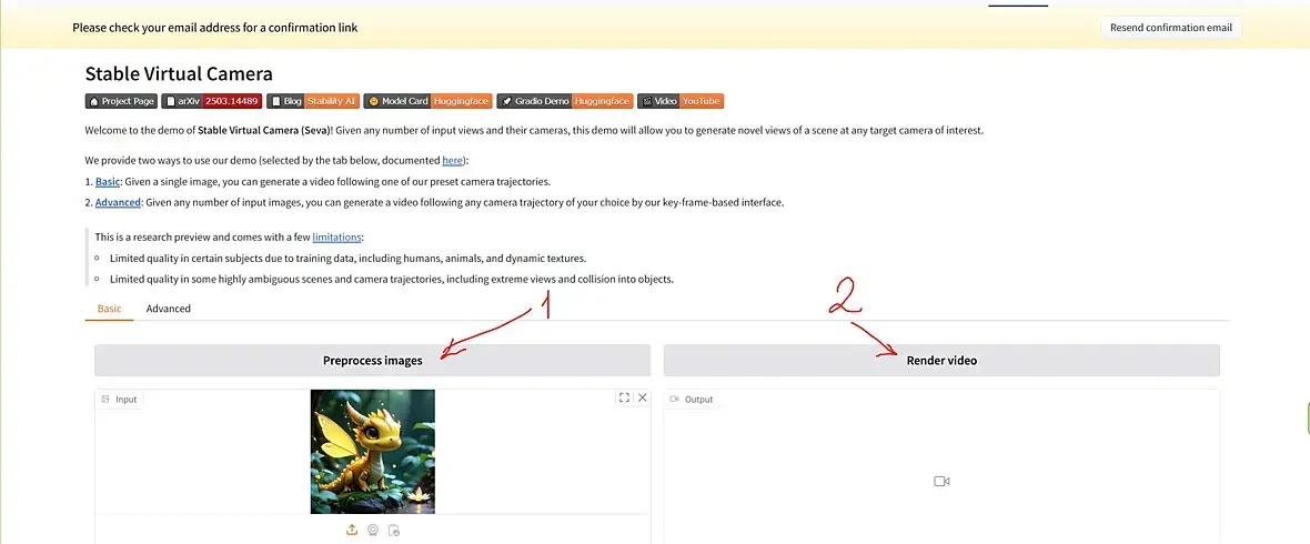А-а-а-а, понял, после загрузки картинки надо было нажать на "Preprocess images", потом на "render video", как то сразу не дотумкал, но качество конечно... Так баловство одно
