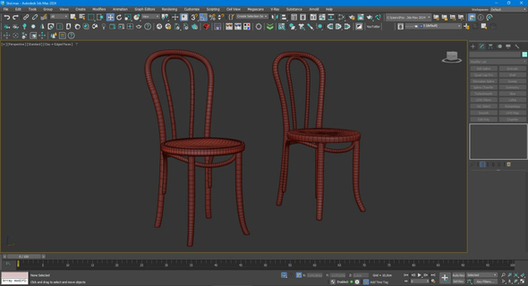 Справа 3д референс сделанный нейронкой. Слева результат моделинга. Удобно было опираться на 3д реф. Так бы дольше делал. Кажется, что простой стул, но времени нужно потратить. Замоделил в максе, развернул в райзоме, покрасил в пеинтере.