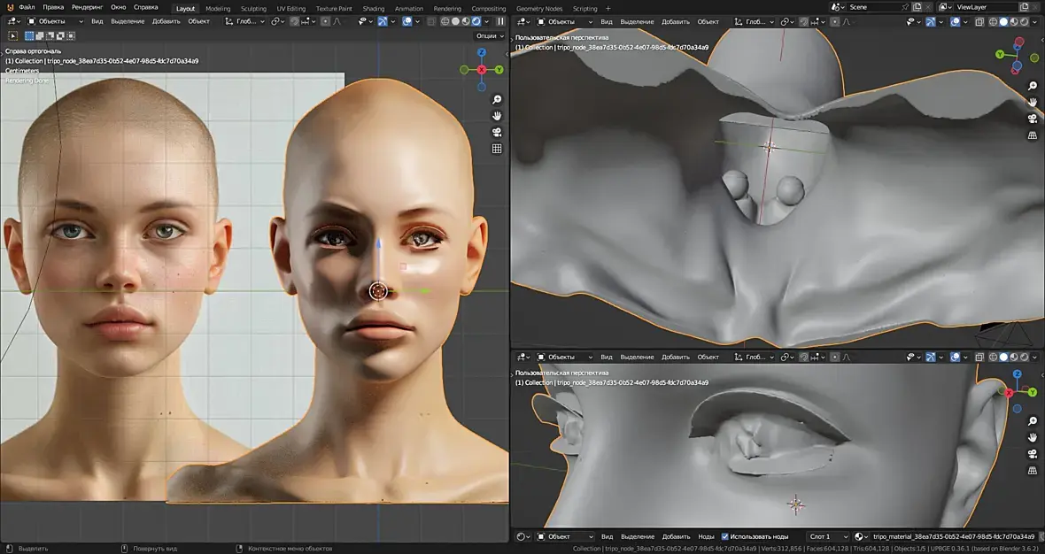 Вчера в очередной раз потестил трипо, думал может что улучшилось. Я это на одной и той же голове делаю. В этот раз почему то сеть вообще решила что это полая болванка, и внутри её какой то брусок, и глазные яблоки.