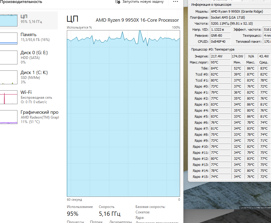 Не могу понять - курва -20 -25 скручена, запас по температуре есть(в этом тесте 85 градусов но в прошлом такое же поведение было и на 75-77), но процессор как будто тротлит - по всем ядрам в среднем только 95процентов загруз показывает
