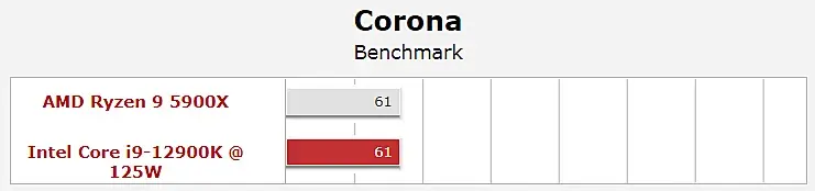 По тем же тестам12900K @ 125W это +/- 5900X, именно 125W(!). Они равны в рендере в целом. В Короне вообще литые 61 сек вышла. Никаких перегревов, всё в "мелком" пакете, они равны. Интел=АМД.