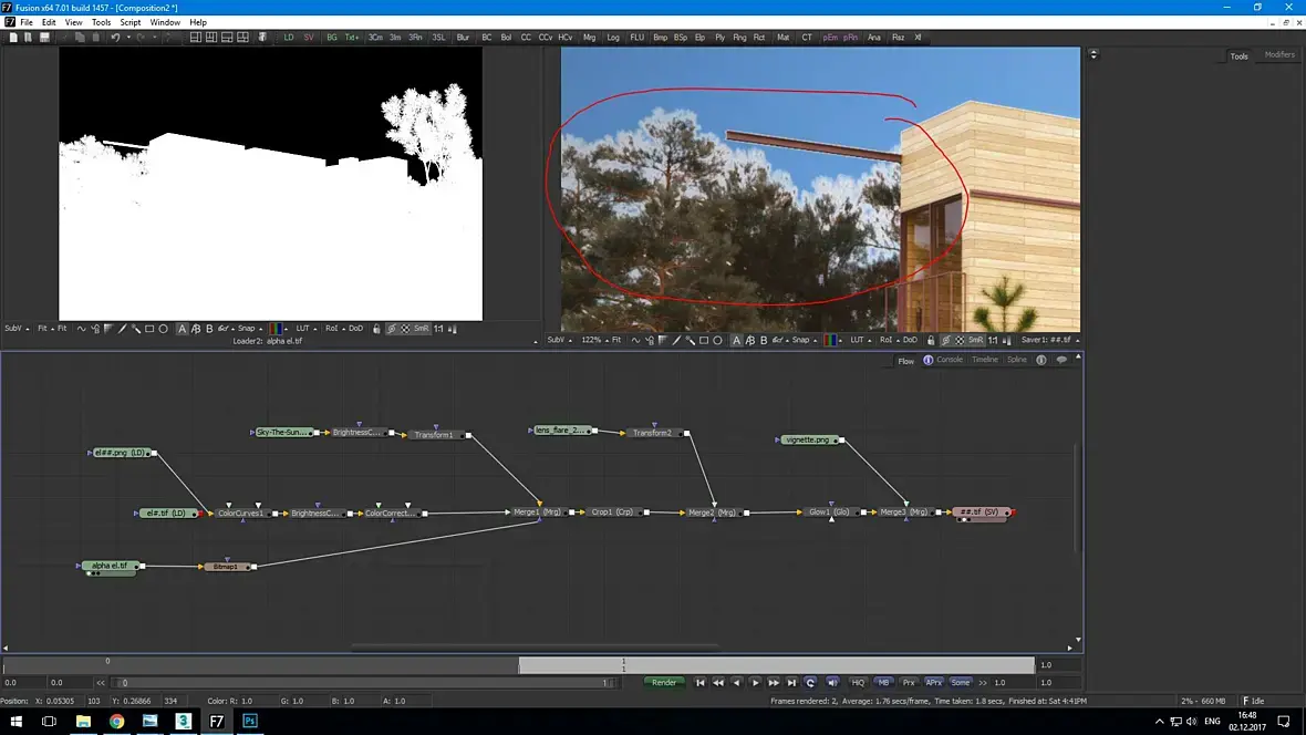Сейчас делаю Tools - Mask - Bitmap (меняю канал Luminance) подключаю к Merge, но вырезается плохо. Особенно на деревьях получается белая койма, да и вокруг здания тоже. В приложении скрин. Чё делать?