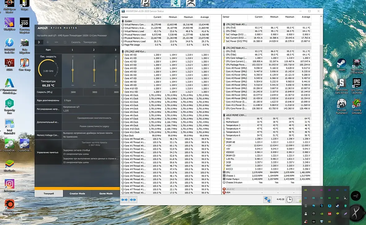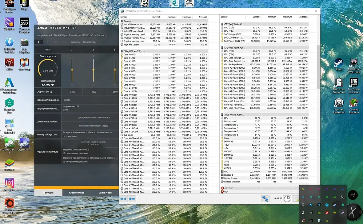 Добрый день! Не нашел куда , решил написать сюда про свой 1920. Собрал я комп на базе матери Асус прайм с заводским водяным охлаждением Кулер мастер. Надеялся разгонять комп, что бы быстрее рендерил. Какой там :( Температура подскакивает чуть ли не до 80 градусов. Поменял термопасту на Арктик МХ-4 и добавил 2 старых 120 мм вентилятора на вдув, стало полегче, но при открытом корпусе - где то 65 градусов. Закрыл корпус и началась та же свистопляска. При рендере 68-69 градусов после 10 мин рендера(страшно представить какая будет температура через 5 часов), периодические проседания нагрузки проца со 100% до 75% (это троттлинг ?), при включении денойзинга температура скакнула до 74 градусов. Не ставлю компьютер в рабочий стол (думаю еще хуже будет с температурой)- стоит на полу в проходе , жена скоро выгонит с дома. Боюсь включать рендер, что бы что нибудь не спалить. Для меня это будет невосполнимая потеря. Всю тему не осилил прочитать, может был ответ на мой вопрос. Извиняюсь за это! Но если можно, посоветуйте добрые люди. Что мне делать - менять термопасту на дорогущий жидкий металл (сташно он как то выглядит, да и деньги последние все в комп вложил)? Менять водянку на воздушную Ноктиа, то же черти сколько денег стоит? Заранее спасибо!