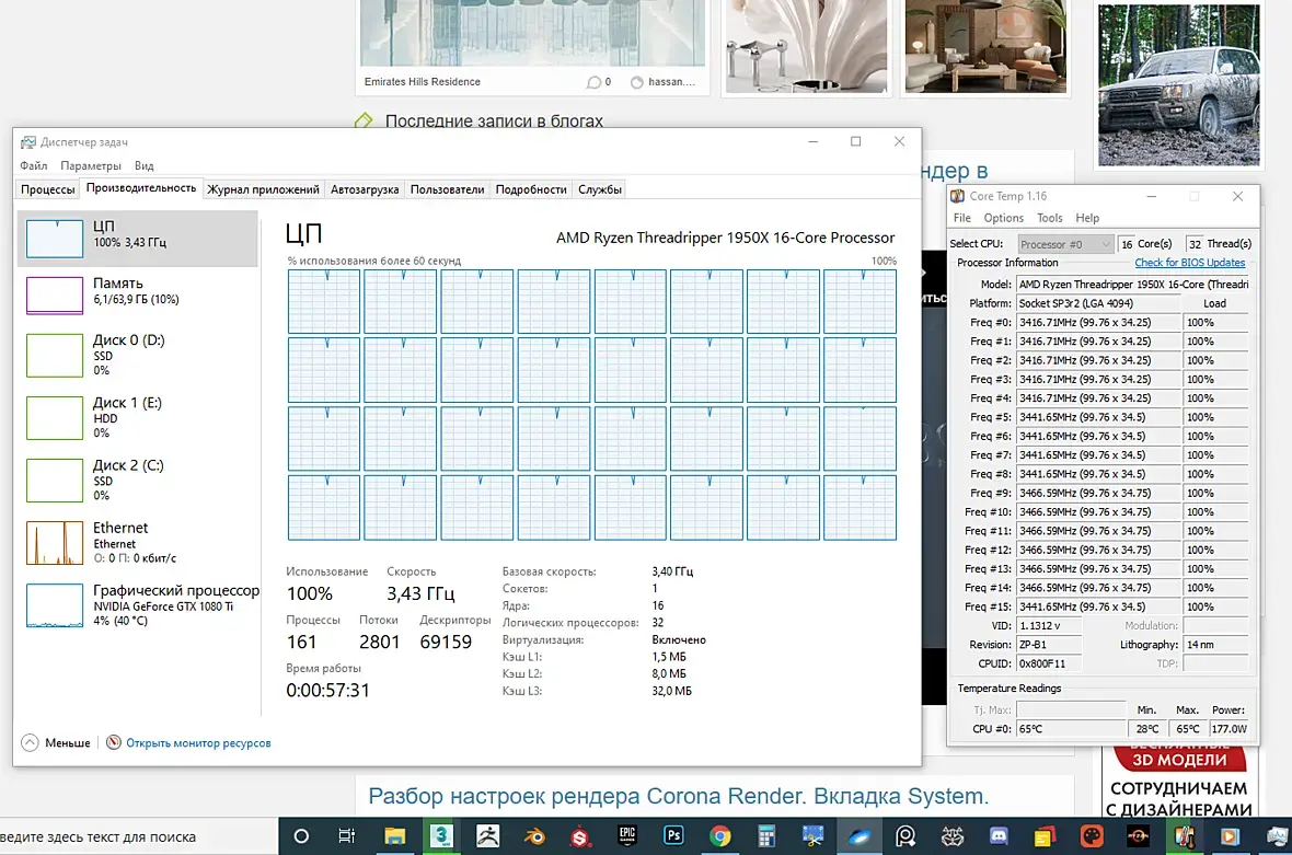 Поставил радиатор вертикально впереди на вдув - час рендера 66 градусов. На грани))