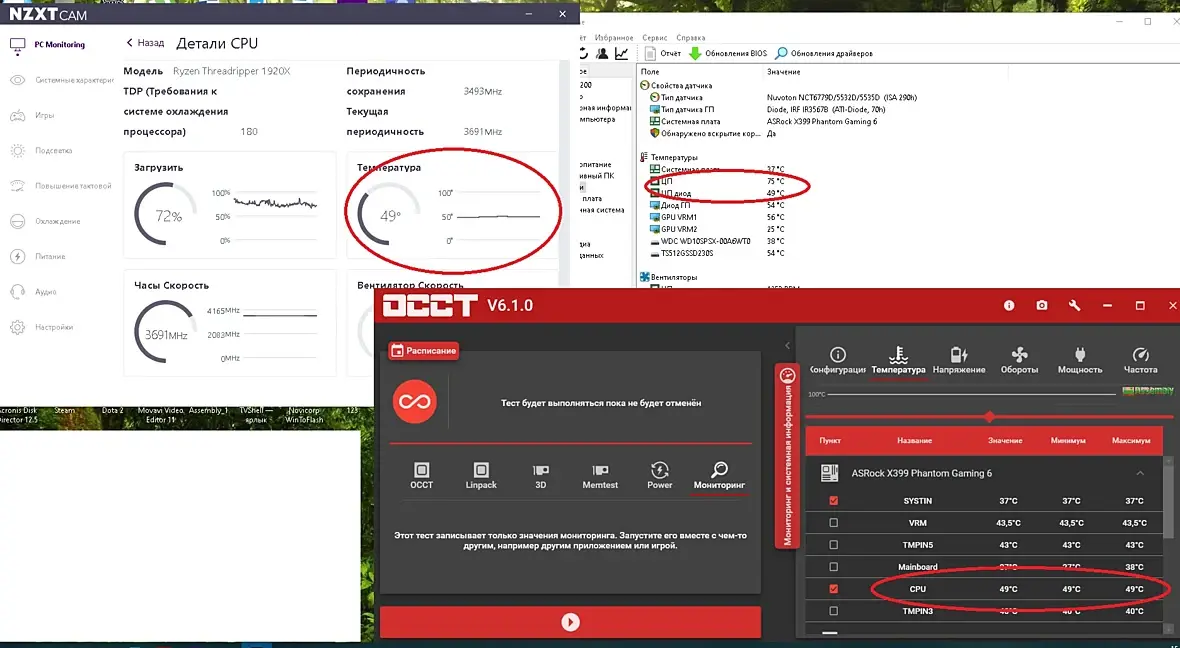 Добрый день ребята. Такой вопрос. пользуюсь рипером уже наверное год. Температура в аиде до 80 градусов. Охлад сейчас биквает но была и дешманская водянка, проц 1920. Скажите какой температуре верить той что в аиде или той что в ОССТ или NZXT. Не то что бы напрягало очень. Напряжение 1.2-1.22. Обороты максимальные. Зачади в основном виртуальные машины.