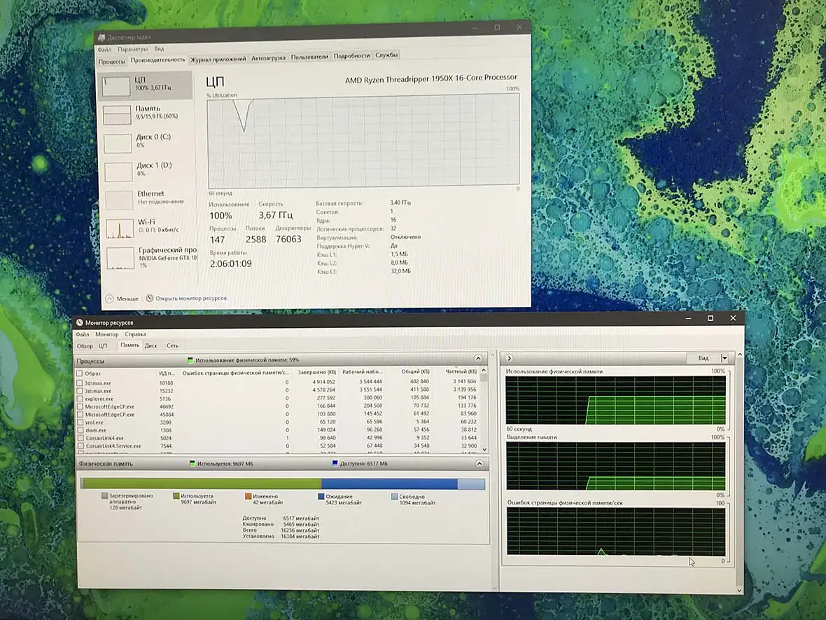 Отзыв на маркете в духе: "Купил bugatti chiron, заправил 80-м бензином...Фигня... Едет немного быстрее моей девятки. Ужасная модель" ))). Вам тут дают дельные советы и вместо споров, провели бы тесты, замеры и решали бы проблему. У меня на win10 не самая сложная сцена подгружает оперативку на 99% (32Gb+1950x). Но я знал что так будет. Доказаны ещё 32 гига.