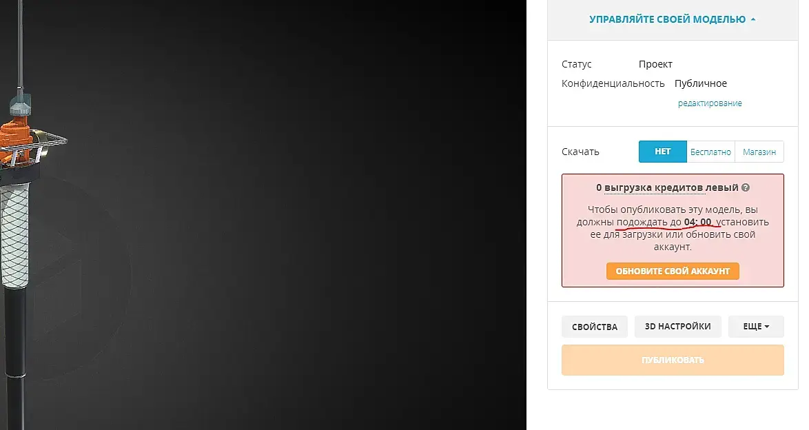 На скетчфабе какие-то изменения. Можно загрузить только для бесплатного скачивания либо для продажи. Но, если авторские права не у вас, и хотите загрузить только для просмотра, то загрузка не доступна. Пишет: "Подождите до 4:00", уже две недели жду