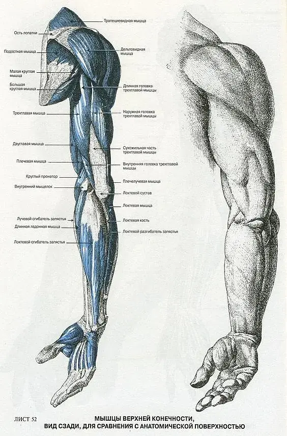 Да в том то и дело, что просмотрел множество картинок мышц, а такое увидел только вместе с кожей) Эта мышца идет везде от косточки у локтя под конец локтевой кости у кисти. А это набухание выглядит под кожей так, будто мышца идет над этой костью, даже еще выше.