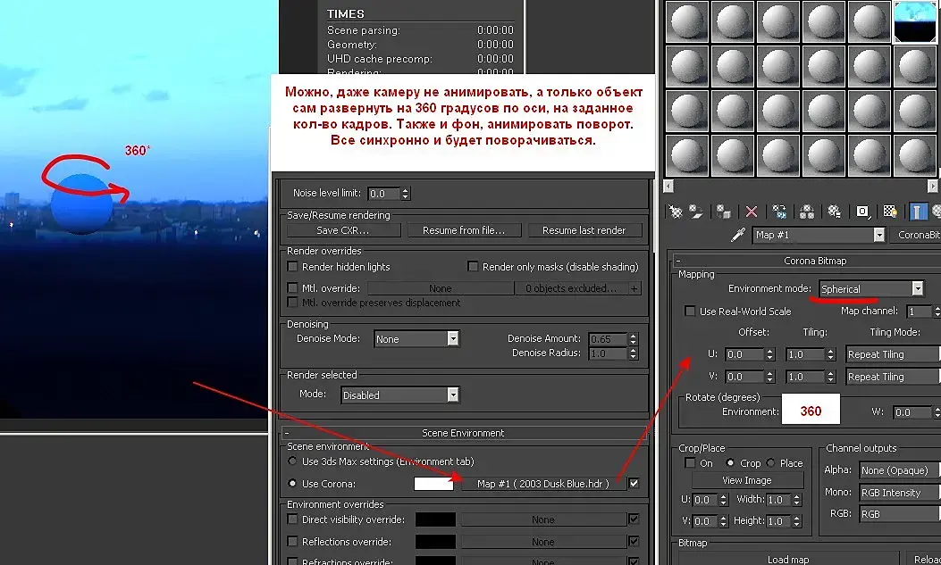 Теперь понял ) Просто до этого Вы писали: "А есть вариант как-то добиться того, чтобы синхронно фон поворачивался с облетом камеры вокруг объекта? Я имею ввиду именно HDRI." Это решается легко вращением ашдээрки с той же скоростью, что и камеры, вокруг неподвижного объекта. Фон будет вращаться синхронно с камерой. Такое синхронное вращение даст точно такой же эффект, как вращение объекта относительно неподвижных камеры и hdri.