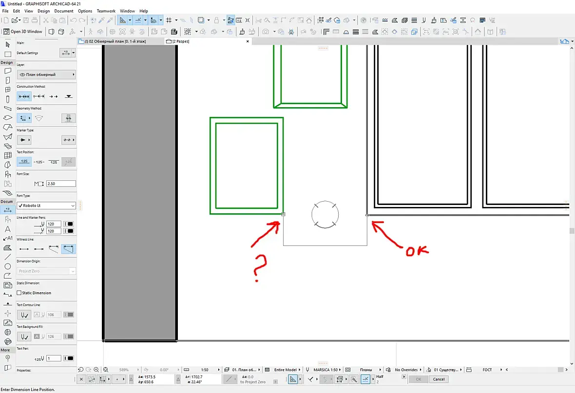 Казус такой: в разрезе (или виде) не привязывается размер к узловым точкам стандартных объектов - зеркалу или картине (к другим вроде норм), на плане - всё ок. В старых версиях не замечал такого. Глюк?