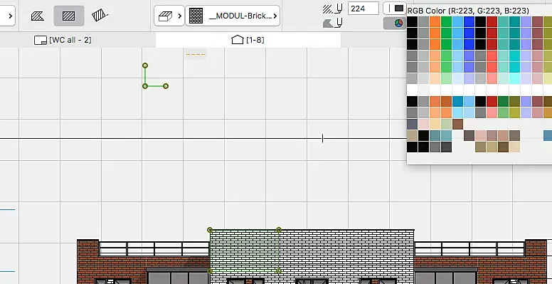 В 19 версии кирпич и фоновая заливка будет отдельно, и экспорт практически совпадает и по цвету и по виду с арчи....