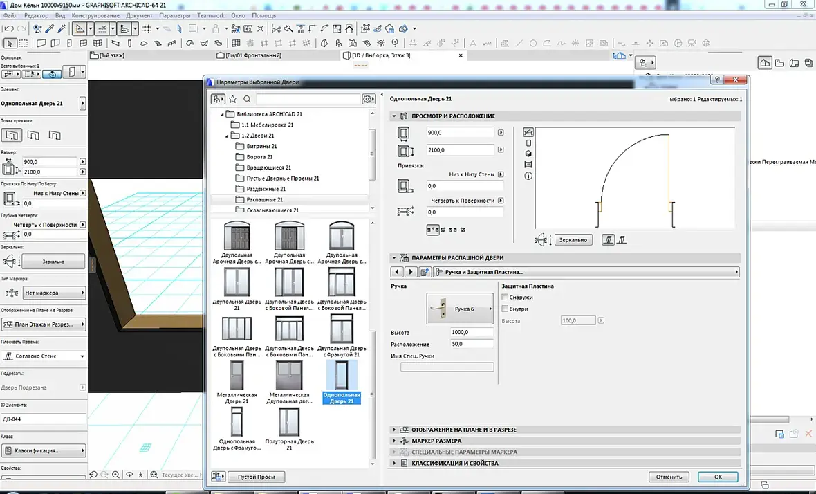 Всё стандарный набор. Архикадовская библиотека. На всех дверях так, и все ручки.