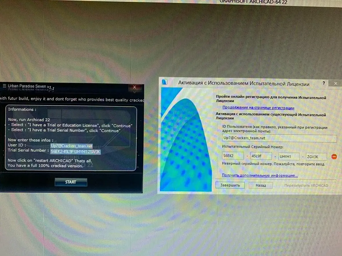 Здравствуете , у меня проблема. После установки всех установщиков, дополнений и обновлений и после того как запустил таблетку, сама программа не открывается для ввода ключа. Вместо этого появляется окошка GRAPHISOFT Bug Reporter. Что делать? Помогите!