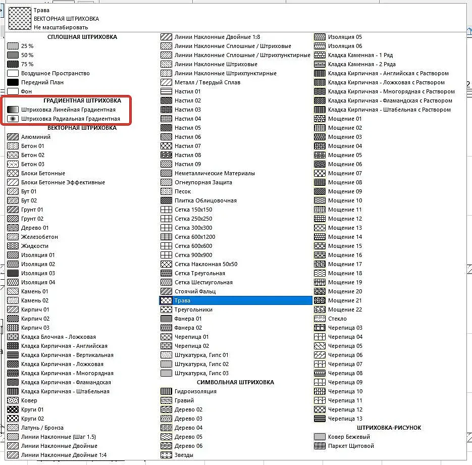 Такой вопрос, открыл чужой проект в архикад 22 и обнаружил там много разной штриховки, которой нет если я допустим создам новый проект или открой свой, а конкретно интересует градиентная штриховка, где ее можно включить или создать? в меню создания своей штриховки ничего такого не нашел