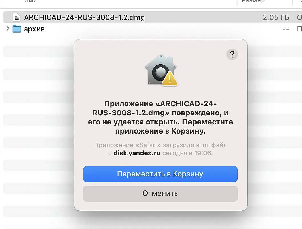 Здравствуйте! Подскажите пожалуйста. У меня MacBook с M1. Попытался установить по ссылке файл архикада. Выдаёт ошибку. Что делать? Как поставить архикад?