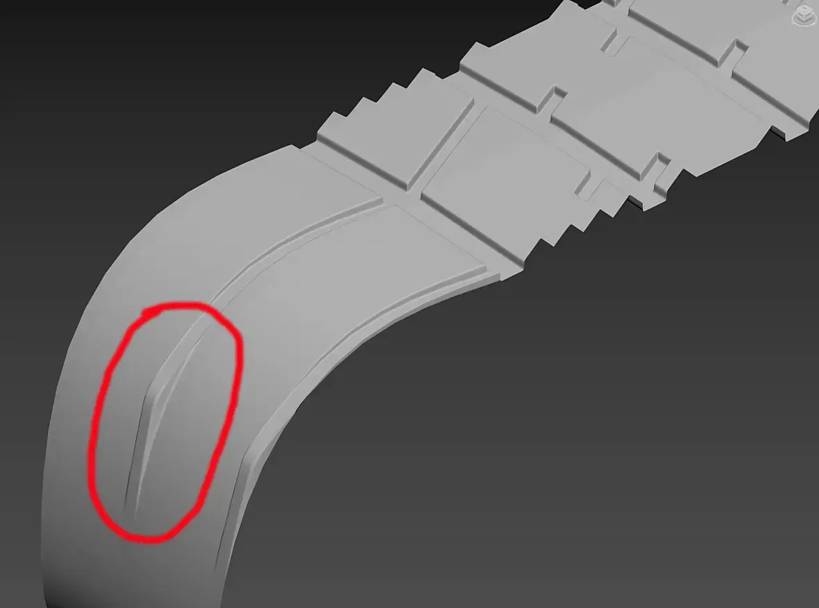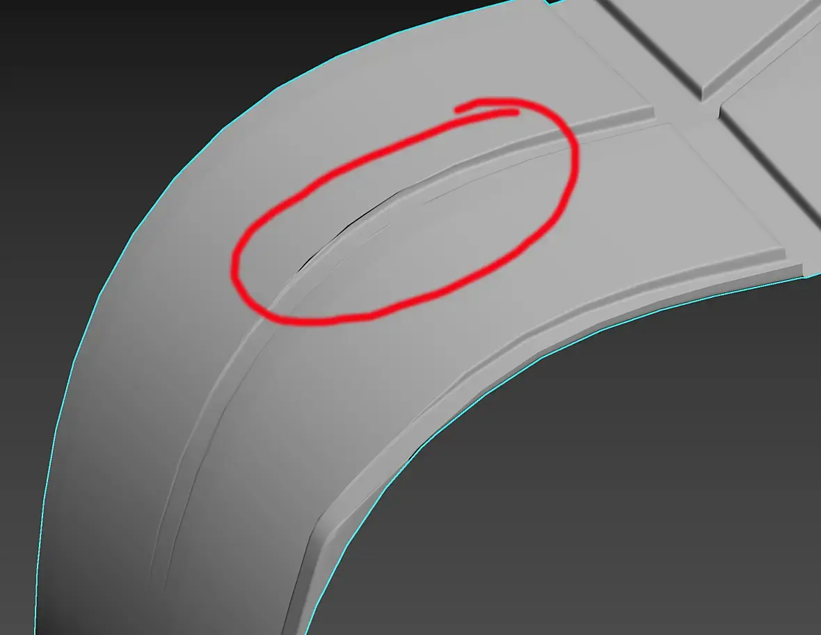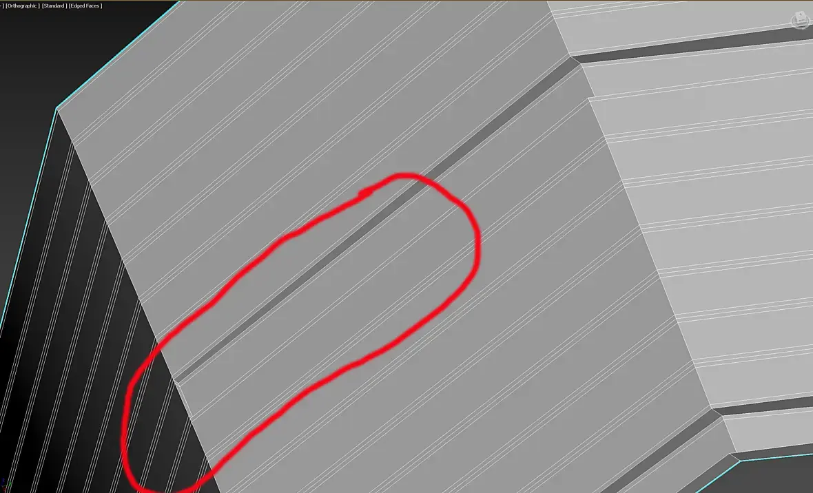 Спасибо, это дало результат, но ступеньку я сделал, чтобы сохранить полигональную сетку. После велда боковые полигоны превратились в треугольники и дали другой артефакт.
