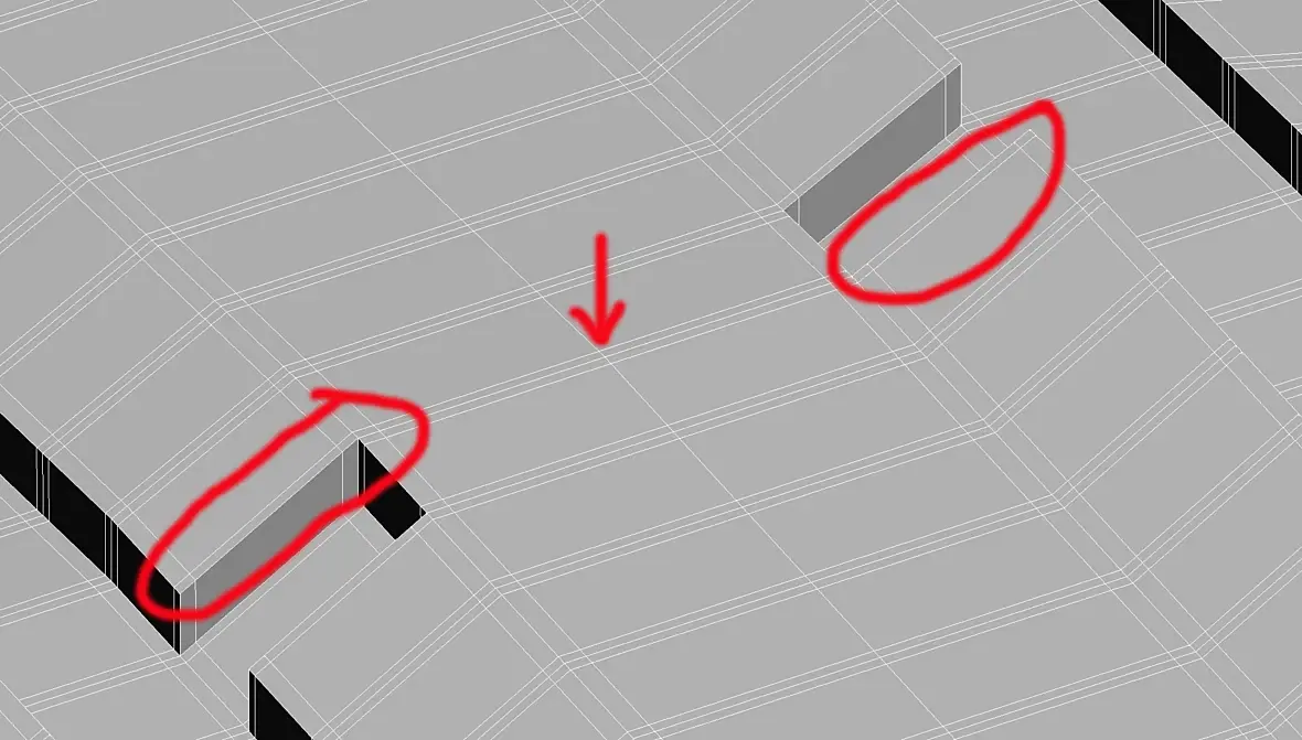 Плотность линий обусловлена тем, что нужна поддержка краям вырезов, чтобы обеспечить им острый угол при сглаживании. Расширяя расстояние между ними, появится нежелательное скругление в обведенных местах на картинке. Стрелкой на ней обозначено место залома.