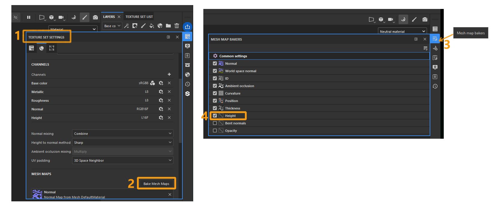 Так нужно же указать, что вы хотите вместе с остальными картами запекать ещё и карту высот (по умолчанию она не печётся).
