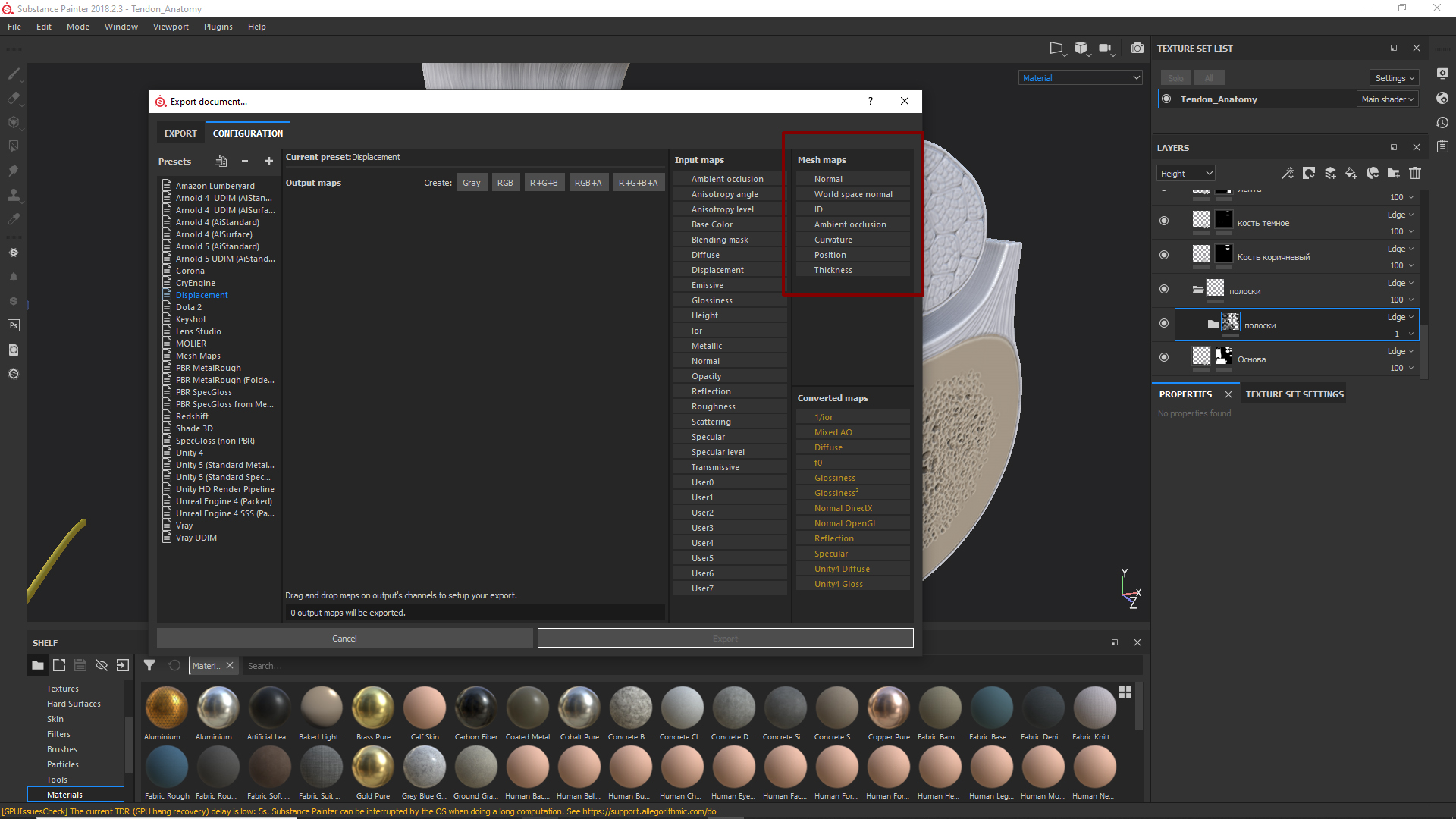 Пока писал да рендеры делал, вы уже написали) Вот в том то и дело, что у меня нет хайта в меш мапс. А с хайта слоев он экспортит только то что в самом сабстансе было сделано. То есть пару почти прозрачных штришков. А у меня нет его там. Что же делать? Где искать?