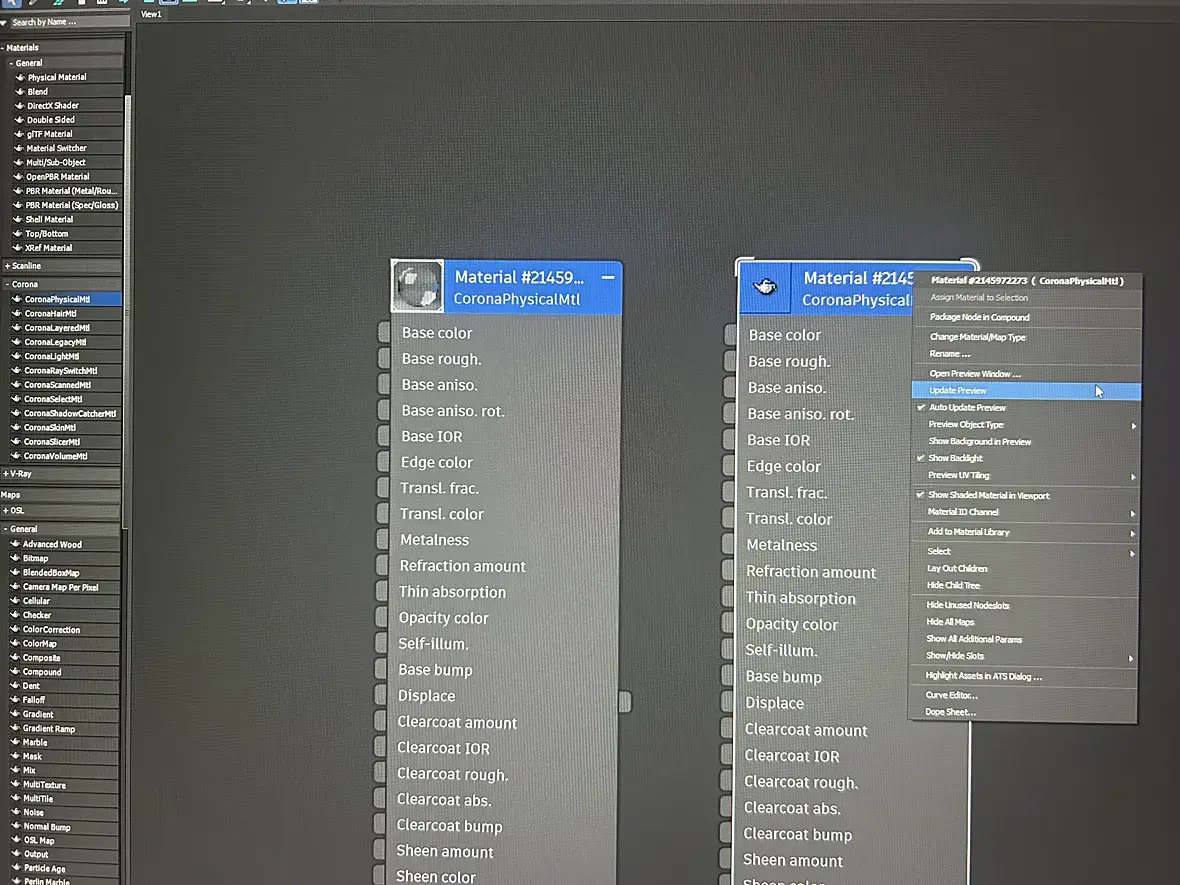 Добрый вечер, весь интернет уже облазила может вы подскажите) Не отображаются текстуры в окошке ( вместо них чайник) приходится каждый раз нажимать на update preview ( галочка авто обновления стоит) каждый раз так приходится нажимать чтобы посмотреть на текстуру Рендер стоит на короне, в файлах ничего не меняла  Не хочется переустанавливать всё, в работе немного раздражает