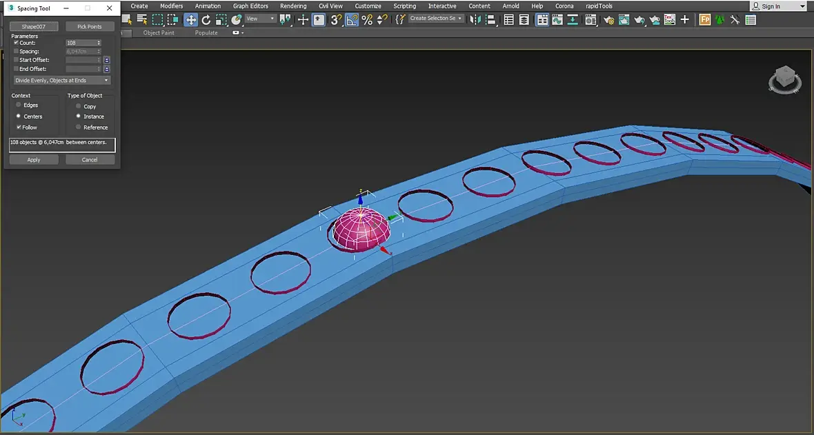 Коллеги, есть такой вопрос. Необходимо расположить полусферы вдоль по поверхности цилиндра. Так, что бы они все были повернуты относительно своей локальной оси. То есть, применяю spacing tool, он они все смотрят в ту же сторону, что и инстанс объект. Как их можно выровнить? Или может есть другой инстумент для таких задач?
