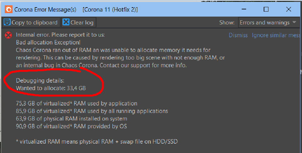 2025 год на дворе! Макс 2022 и Корона 11.2. При рендре распределённой скаттером травы, вылетает Bad allocation, с требованием дополнительных 33гб памяти. Сохранить сцену не получается, Макс зависает и тю-тю. При этом физической оперативки 64гб, и загружена она на 20% максимум. А вот виртуальная память подскакивает при рендре до небес, с 15гб до 80гб.