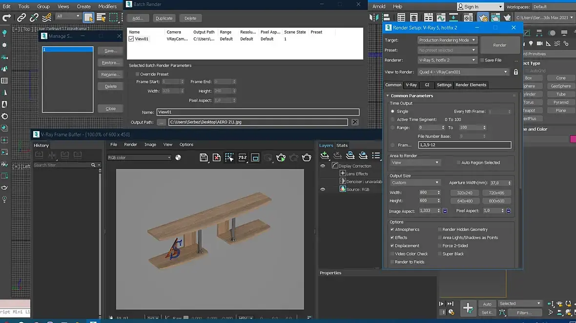 Обычно настраиваю batch render в сцене, сохраняю, рендерю, закрываю файл. При следующем открытии файла настройки batch render на месте (камеры, пути сохранения).