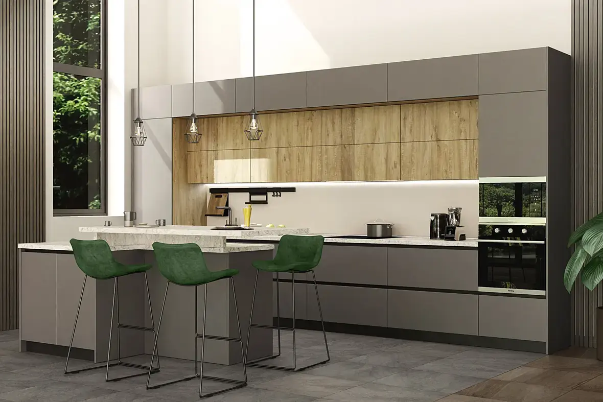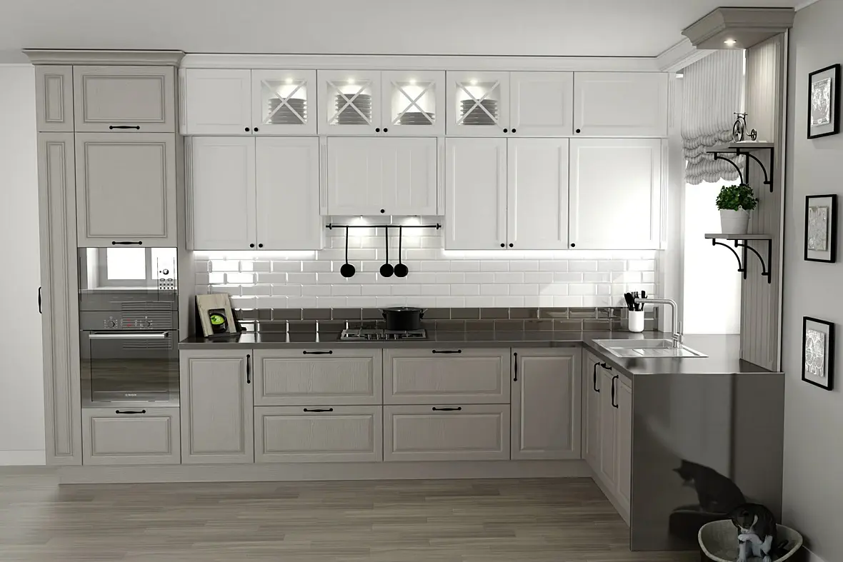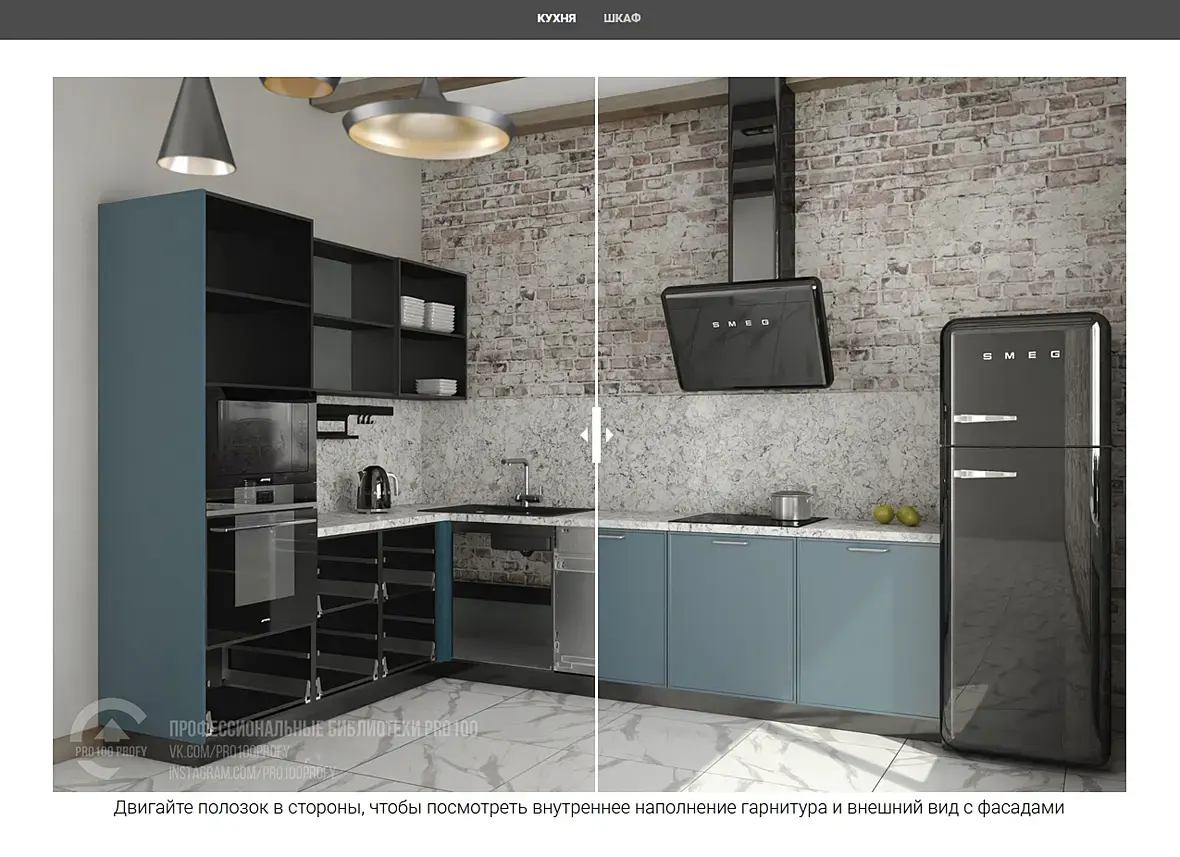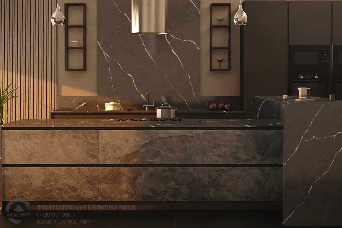 Я собираю кухонные модули. Корпус, фурнитура, фасады группирую в блоки и забиваю этими блоками библиотеку по моделям. Плюс настраиваю материалы для работы в самой про100 и для рендеринга KRAY. А уже потом из этих модулей я или менеджеры для заказчика собирают гарнитур и подбирают цвета. А доведение рендера KRAY из Pro100 до максимального качества чисто спортивный интерес. Ну и калымы бывает приваливают. Вот 15 кухонь надо таких картинок наделать.