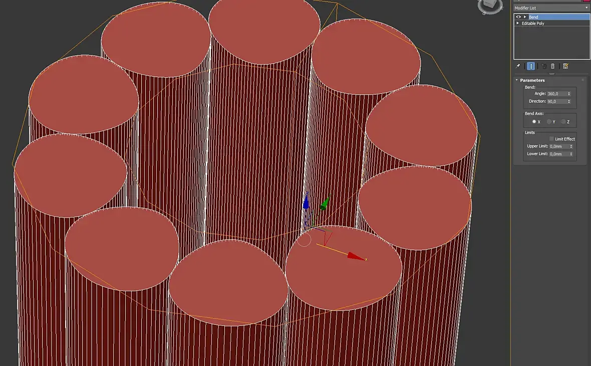 Добрый день, а почему бенд деформирует геометрию? казалось что сложного скрутить в 360 10 цилиндров? и после скручивания вместо цилиндров на виде сверху "яички"))))