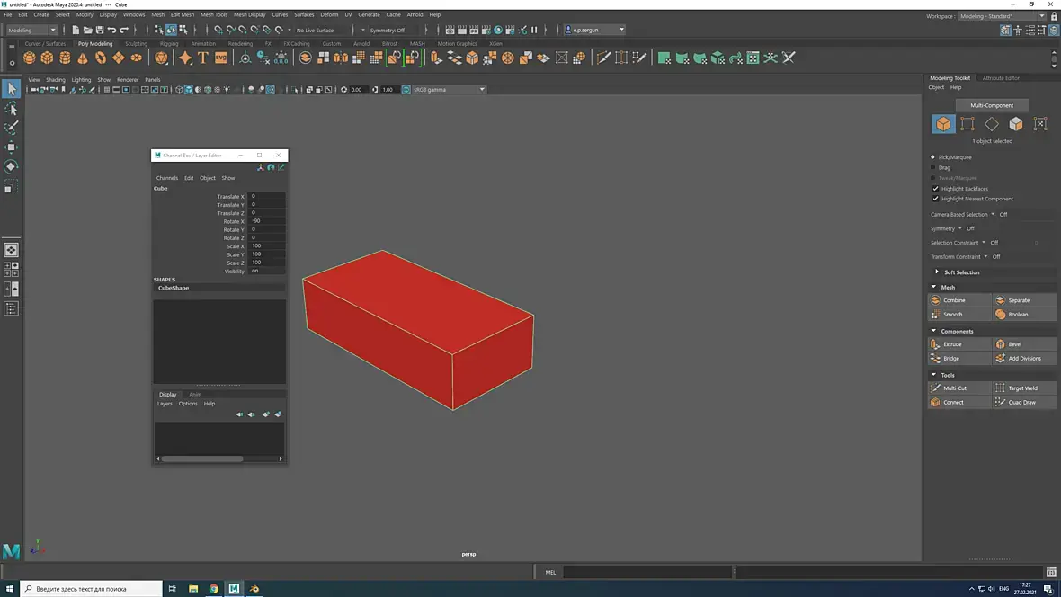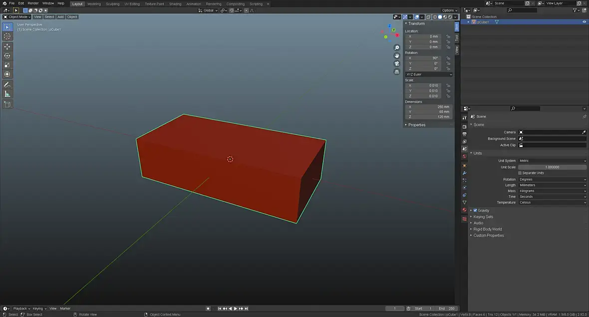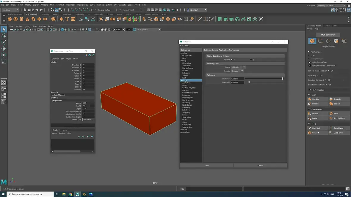 Создаем в Maya красный кирпич с размерами по ГОСТ в миллиметрах: